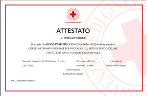 Come Psicologo Clinico, faccio parte anche dell’Albo degli Psicologi del SEP della CROCE ROSSA ITALIANA, Supporto per l’Emergenza Psicosociale, del Comitato 4 a Roma